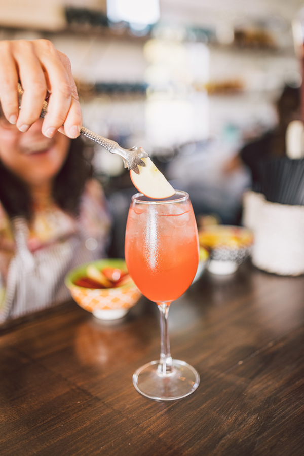 Cocktail hour in the renovated barn was a huge hit! Our guests loved mingling under the string lights and hanging out on the patio right outside the barn. Even though it was a hot, humid 90 degree day, our guests stayed cool with the fans and the breeze that goes through the barn. We chose two signature drinks and they turned out soooo delicious, and the Seneca Ridge bar staff even had real basil and mint plants lined up at the bar to use for garnishes! They also have a really nice selection of local beers and wines.